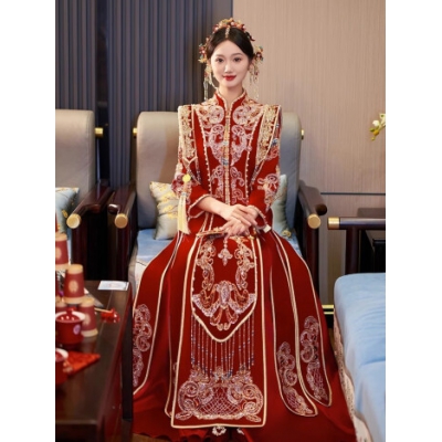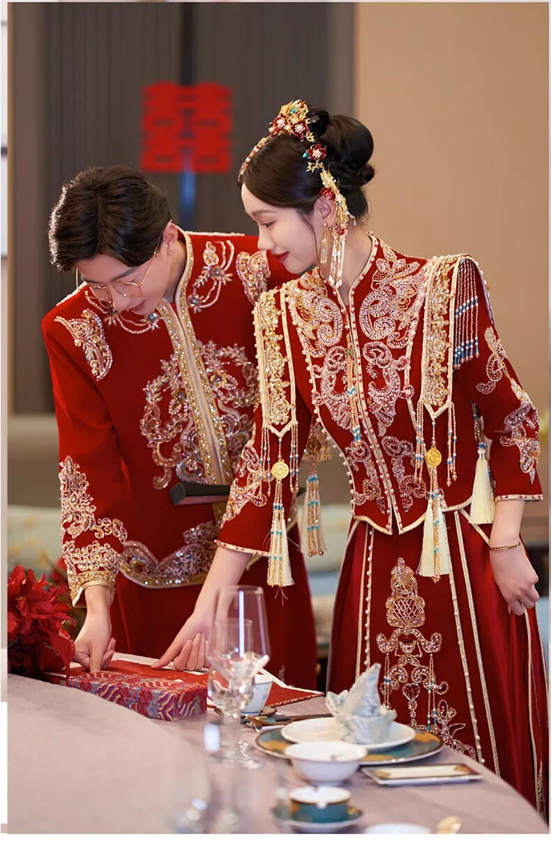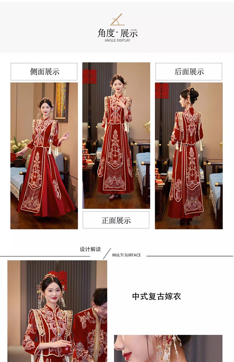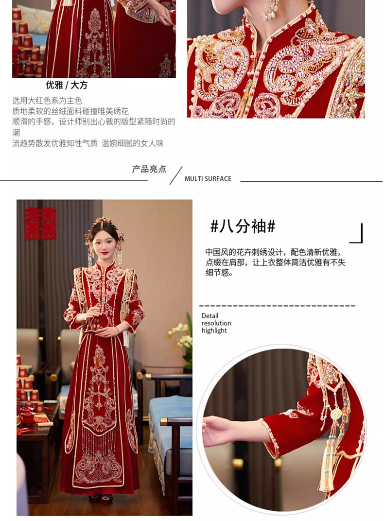 商品名称:泰勒马丁丝绒秀禾服新娘婚纱2024新款中式婚服结婚敬酒礼服古装嫁衣婚服 23703丝绒款(仅女装) L