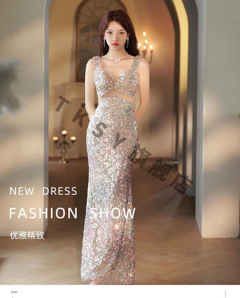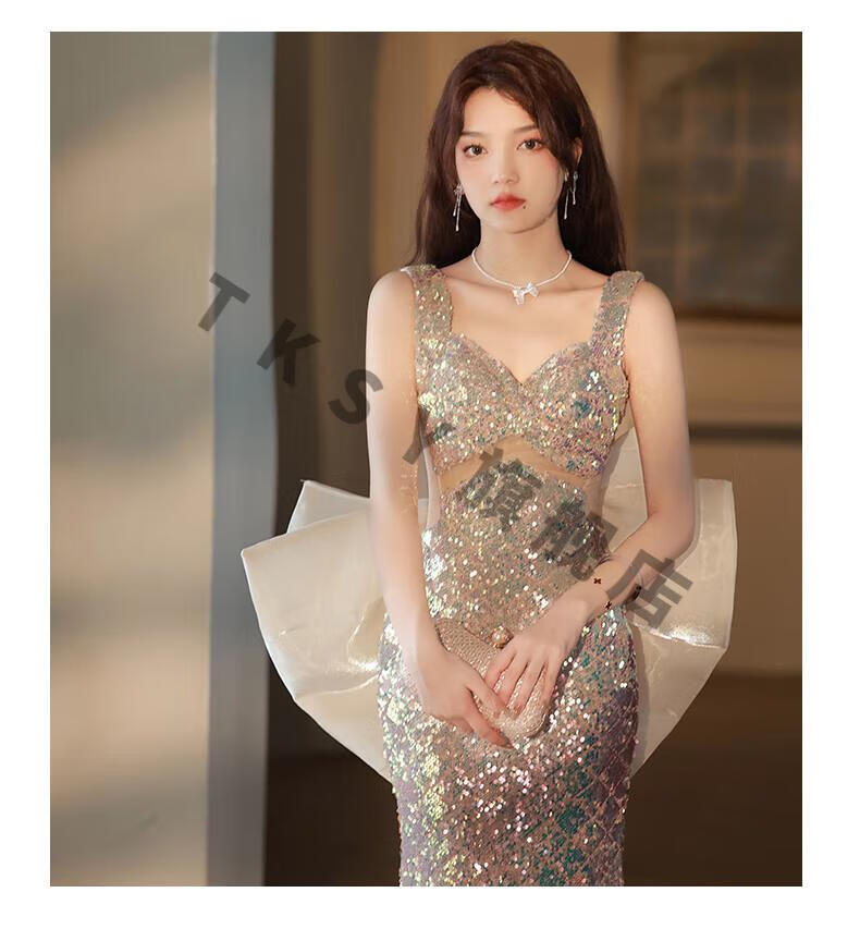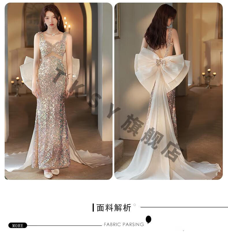 商品名称:TKSY鱼尾晚礼服裙2024新款高端轻奢小众法式感敬酒服新娘婚纱女冬 香槟金色+蝴蝶结 XS