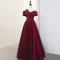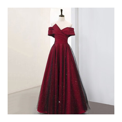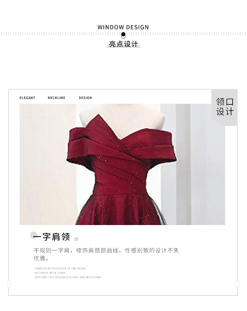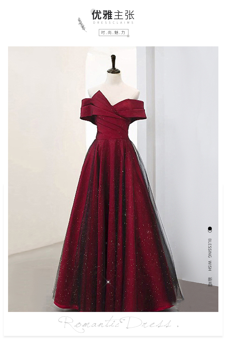 商品名称:丽佰昕敬酒服新娘一字肩轻奢小众高端缎面订婚结婚红色婚纱礼服裙女夏款 酒红色长款 M