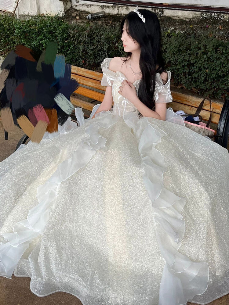 盖淘高端轻奢晚礼服裙女新款仙气学生艺考主持人婚纱 香槟色 M