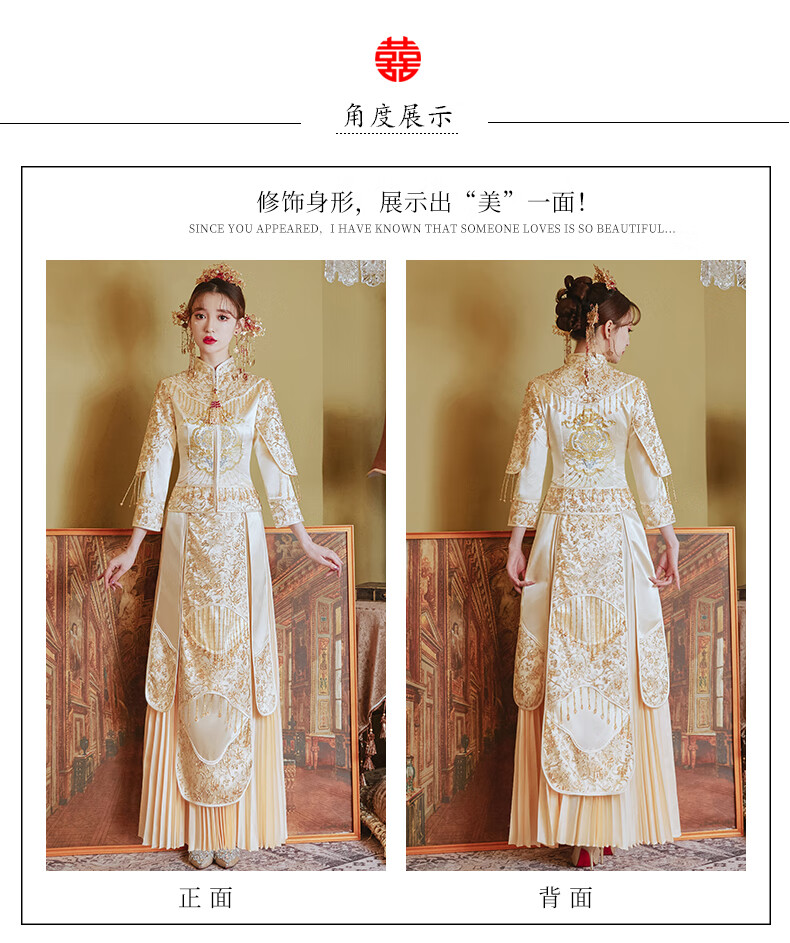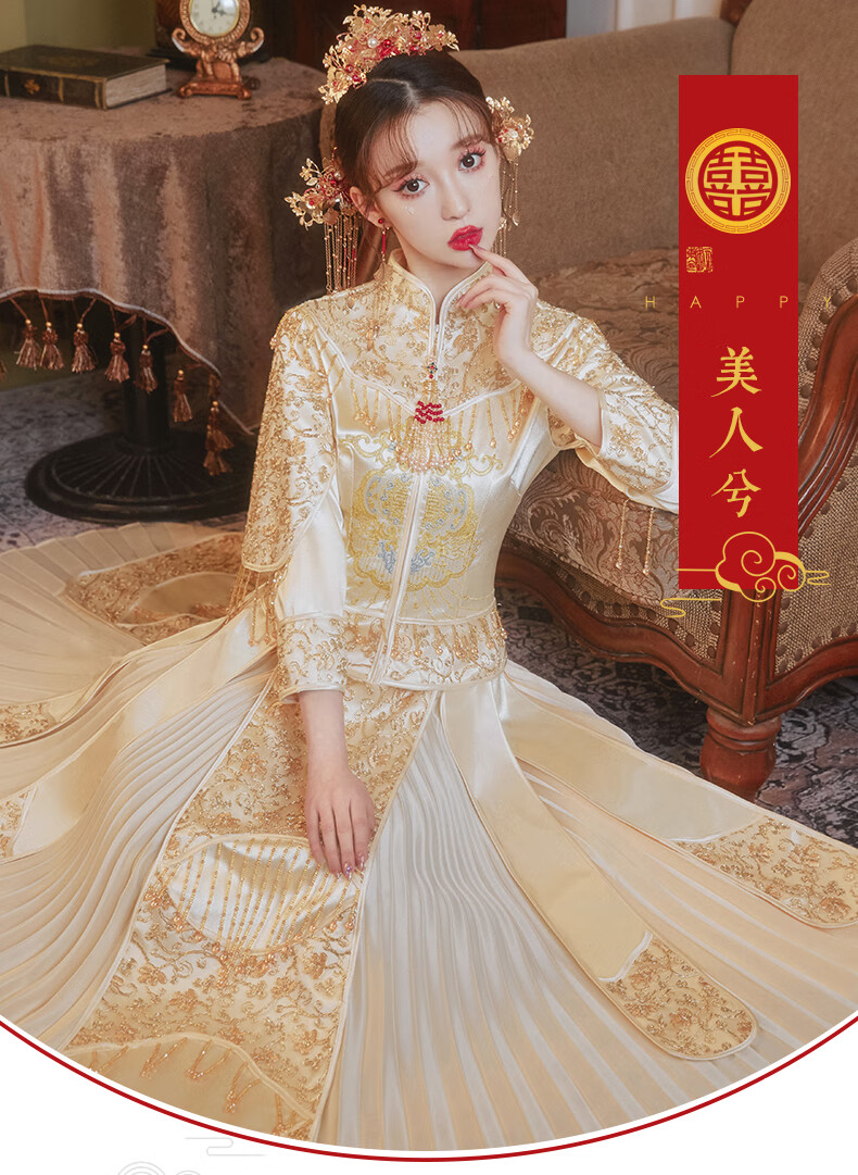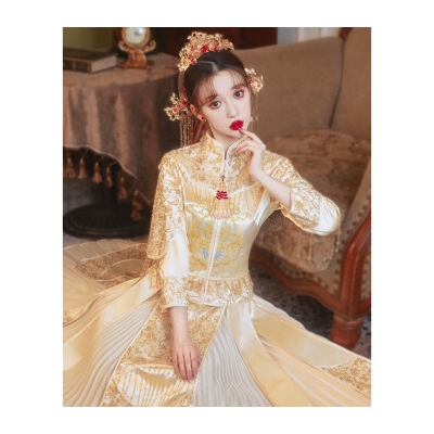 商品名称:铂朗尼奥 中式婚服冬季秀禾服新娘婚纱男女套装香槟色秀和服2022新款小个子 红色秋冬款+配饰 4XL