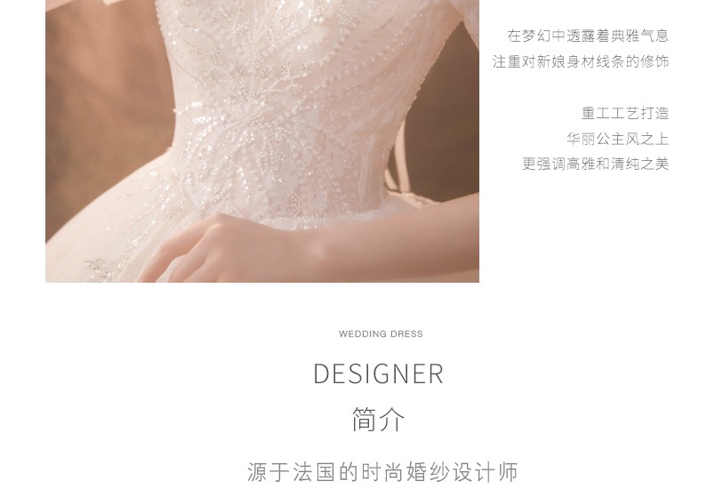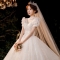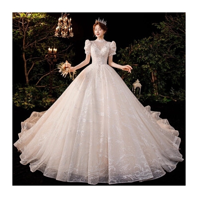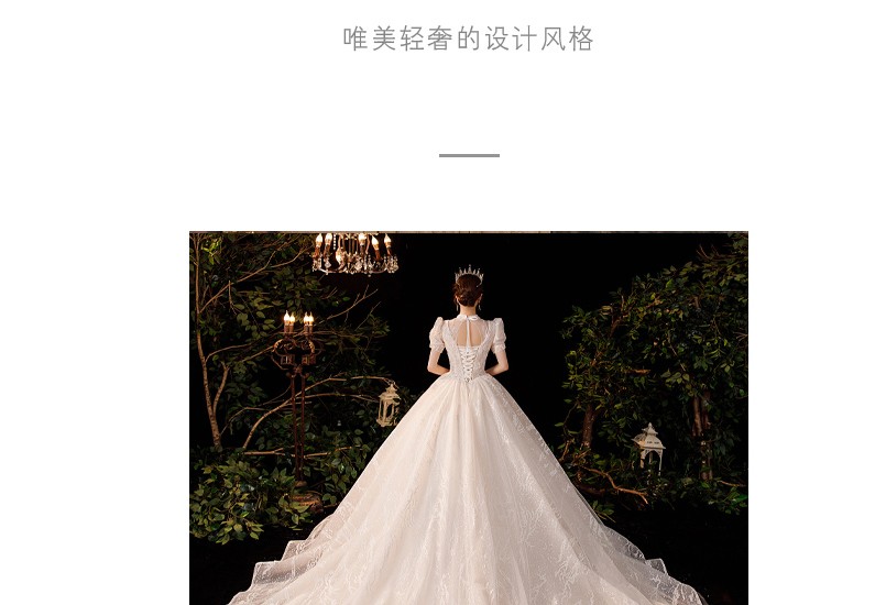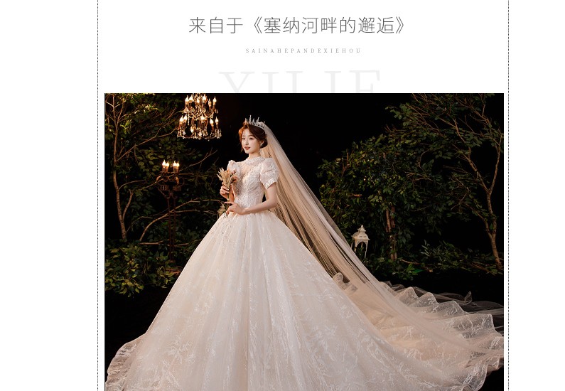 商品名称:红妆饰佳 婚纱礼服2024新款新娘公主泡泡袖奢华宫廷风拖尾法式主婚纱 浅香槟平地款 S