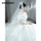 蕰蔓唲婚纱新娘主纱2024小个子一字肩缎面新款拖尾法式轻出门纱冬季 米白齐地 三件装 XXL