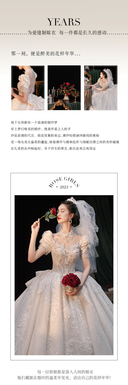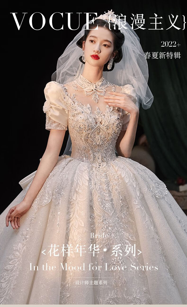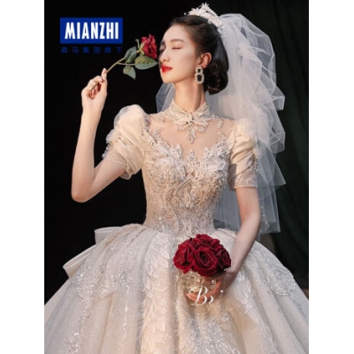 商品名称:棉致婚纱主纱2023新款新娘复古气质高级重工宫廷风长拖尾 白色 齐地款 S