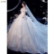 STiannn_shim高级质感法式主婚纱2024新款一字肩气质新娘宫廷风高端蕾丝大拖尾 白色齐地 L