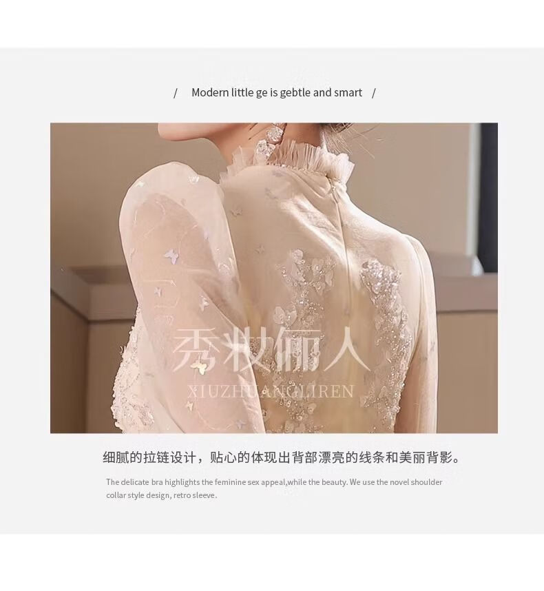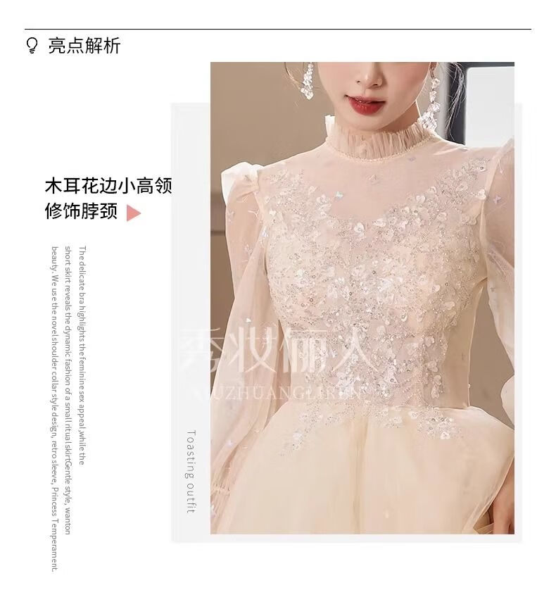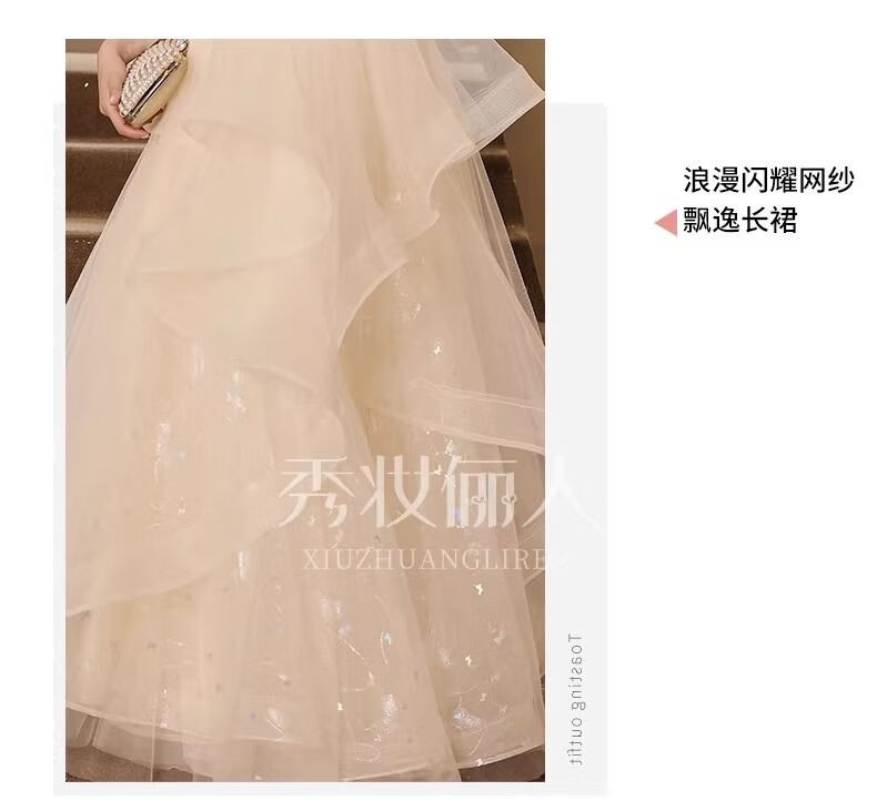 商品名称:PZCL婚纱新娘主纱2024香槟色晚礼服裙女2024端宴会主持人生日艺考成人 香槟色 M