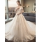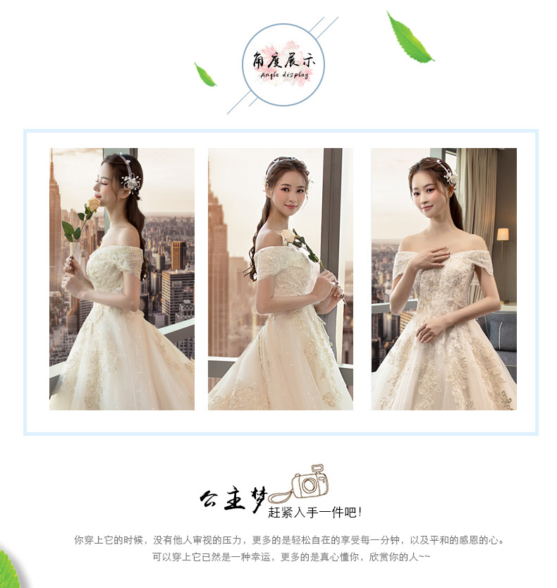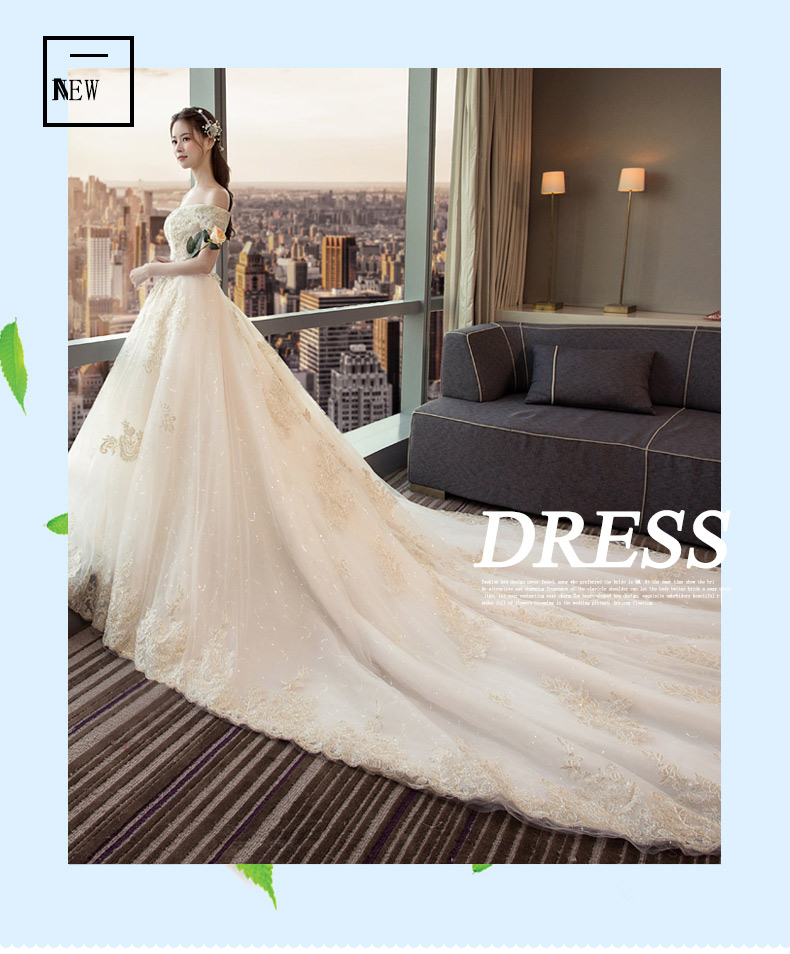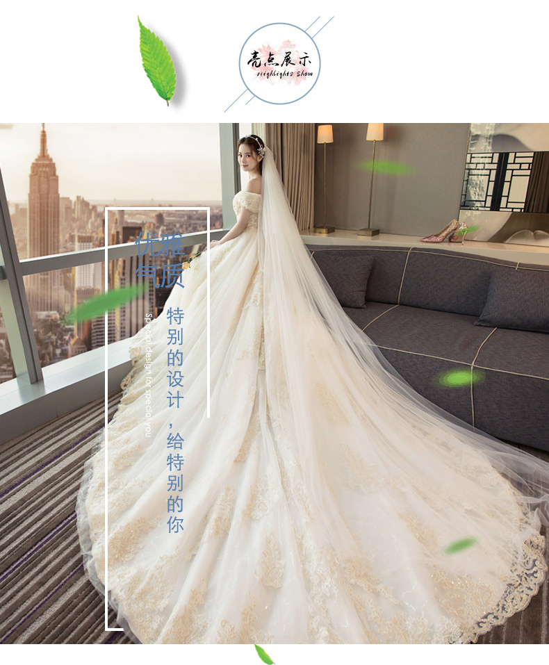 商品名称:法蒂雅 新娘结婚主婚纱2024新款香槟色一字肩大码绑带长拖尾简约婚纱女 香槟色绑带1.5米拖尾 M