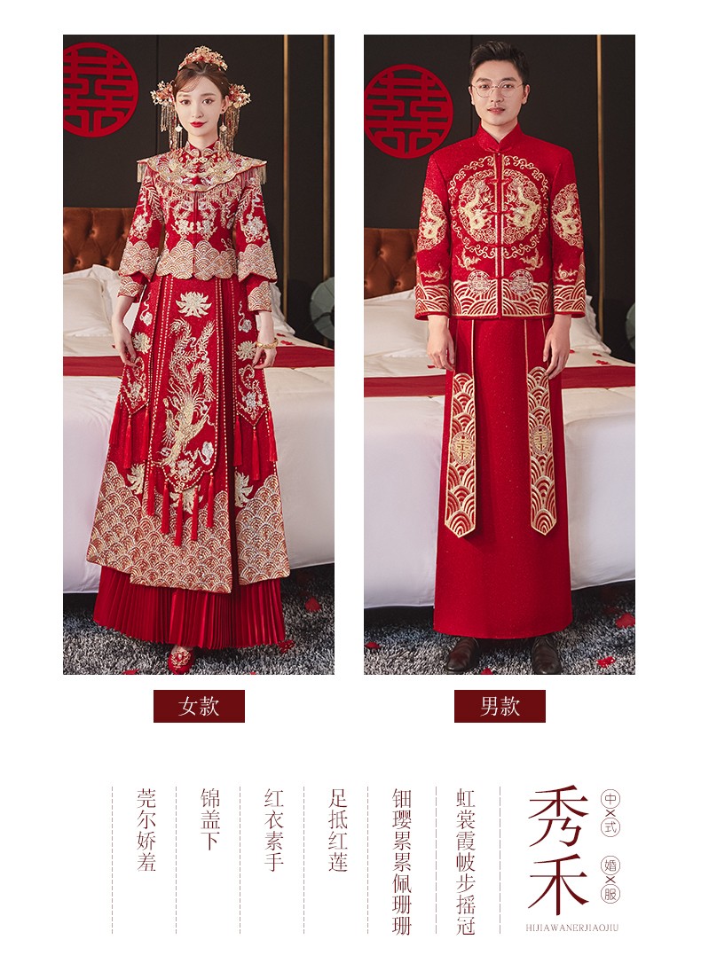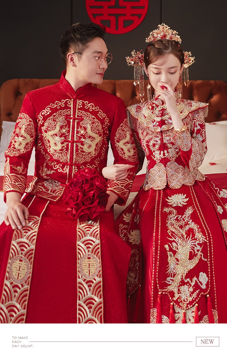 商品名称:泰勒马丁(TAILEMARTIN) 秀禾服新娘2024年新款情侣结婚礼服中式婚纱敬酒服龙凤褂嫁衣 311披肩无钻款(仅女装) M