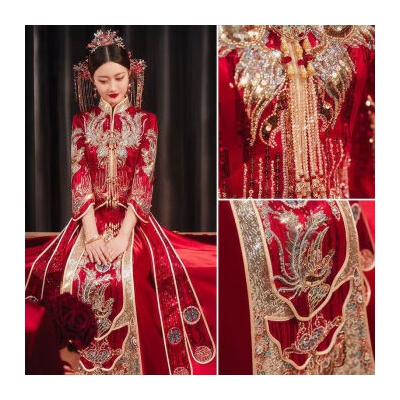 嬅欣重工秀禾服新娘2024秋冬季新款中式婚纱结婚礼服秀和服女 S