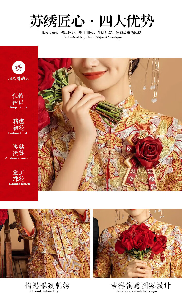 商品名称:嬅欣绣禾服结婚秀禾服150小个子龙凤褂新娘中式嫁衣褂皇敬酒服 褂皇无钻款无配饰套餐 s